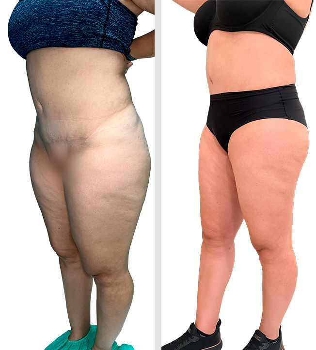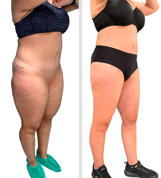 Los resultados son visibles de forma progresiva a medida que baja la inflamación postoperatoria. Las pacientes suelen experimentar mejora del contorno corporal, reducción del dolor y mayor ligereza.